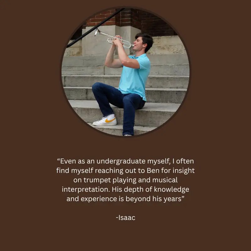 I am trained and have expertise in ALL styles of trumpet. Classical, jazz improvisation, lead playing, and commercials styles. Whether you’re working on fundamentals, lead playing, or soloing, we’ll build a plan around your interests.